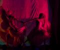 В разрабатываемой ныне версии спектакля все интерьерные и ландшафтные объекты перенесены в виртуальную часть, поскольку их планируемый масштаб либо не позволяет реализовать их физически, либо на несколько порядков увеличит стоимость производства спектакля. В физической реальности остаются большинство персонажей и объекты, сравнимые с ними по размерам, хотя все они имеют свои отражения — одиночные или множественные — в виртуальном полупространстве.